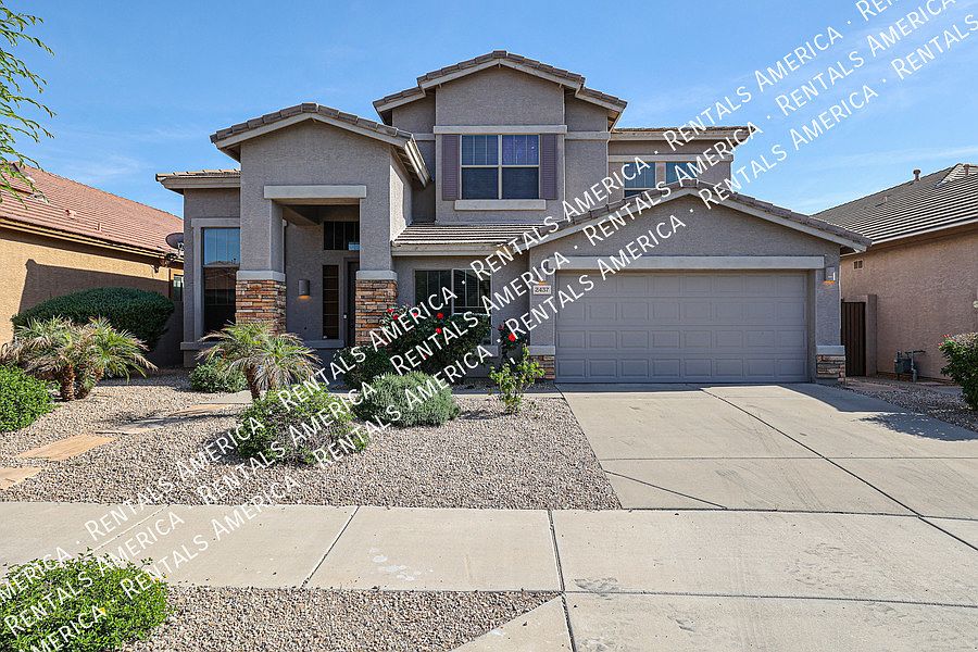 COMING SOON! Upgraded and energy efficient house with Tesla Solar Power Panels that will save significantly on electric bills! This 5 bedroom 3 bath home features a master suite downstairs with a separate tub and shower sitting area. The home boasts with easy maintenance hardwood flooring, laminate and tile flooring throughout. There are upgraded appliances in the kitchen with a breakfast island and granite countertops. Brand new washer and dryer installed in the home. The entry to the home has a beautiful wrought iron staircase that overlooks the separate living and dining room. Other upgraded features of the home include Costco Water Softener System for the entire home, Costco R/O Drinking Water System. Ring Security System, and a new Maytag washer and dryer. Enjoy the resort-style backyard with artificial turf and a large paver area. This home allows for easy access to freeways like the 303, I-17 and 101. Also home to close to TSMC, Anthem Outlets and Sonoran Desert for biking and hiking trails. Your true dream home awaits! One Time Admin Fee: $300, Pet Deposit: $300/pet (if applicable), Service Fee: 2%. $39/month Resident Benefits Package, Helping Heroes Discount Available! Cats Allowed Disposal Dogs Allowed Dryer Garage Pets Allowed Washer