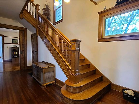 What a beautiful 1907 4 BD, 2BA home sitting on 6+ acres in a rural setting. When you step into the foyer you will see beautifully crafted original and natural woodwork in excellent condition. Impressive original columns in the parlor room, ornate newel post with winding staircase, 3 sets of 7.5' pocket doors, beautifully crafted fireplace with egg & dart molding, built in DR curio cabinet with a pass thru and leaded glass doors, built in kitchen pantry, original clawfoot bathtub, original wood floors, several original light fixtures, picture rail molding throughout the home and another staircase. Wait till you see the attic.This well maintained home is gorgeous and unique and very nicely landscaped. You will also enjoy the metal pole barn 34x24 w/ elec and concrete floor, detached 2+ car garage and utility shed. Seller is offering a Shield Complete Home Warranty!