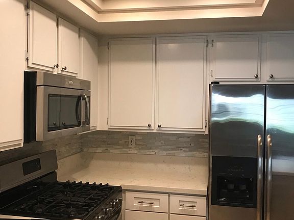 Please do not complete application until you have seen the condo and we have talked. Quiet and cozy one bedroom, one bath condo in a gated community. The home has been recently remodeled with new cabinets, lighting, wine fridge, gas range, bathroom vanity. Ground floor condo includes patio, AC, new gas range, along with newer refrigerator, microwave, dishwasher and it's own garage. This condo is close to restaurants, shopping, in addition to being freeway and toll road close. Includes community pool, tennis courts, and park that even includes a section for dogs. Tenant responsible for utilities.