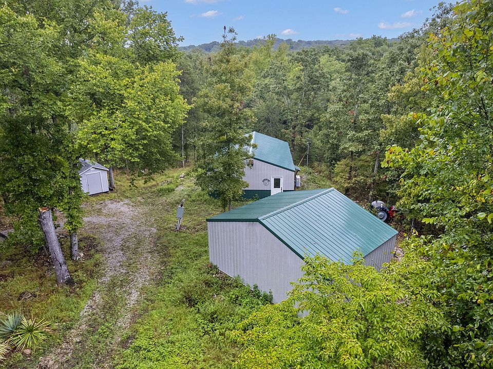 Welcome to your dream country retreat! This charming barndominium, built in 2020, offers a perfect blend of modern comfort and rustic charm, nestled on 10 pristine acres of serene countryside. With one bedroom and one bath, this cozy home boasts just over 600 sq. ft. of well-designed living space, ensuring every inch is utilized to its fullest potential.As you approach the property, the gated entry and circle drive immediately highlight the privacy and seclusion that define this home. The expansive acreage is a haven for nature lovers, featuring a beautiful wet-weather stream, and abundant wildlife, including deer and turkey, all viewable from your back deck. Imagine sipping your morning coffee or unwinding in the evening, surrounded by the tranquil sights and sounds of nature.Inside, the home's tasteful finishes include pine car siding on the walls and ceiling, complemented by old barn wood accents and durable vinyl plank flooring. The open-concept layout flows seamlessly, with a barn door leading to the master bedroom, complete with a cedar-lined closet. The kitchen is a delight, offering two windows that bathe the space in natural light and a convenient location next to the back patio door--perfect for easy barbecuing.The property is equipped with all the modern conveniences, including a 4-year-old mini-split system that ensures year-round comfort and a recently installed septic system. The maintenance-free exterior and private water well add to the appeal, making this home truly move-in ready. The detached two-car garage provides ample space for vehicles or a workshop.This property is more than just a home; it's a lifestyle. If you're seeking peace, privacy, and a connection with nature, this is the place for you. Come start making memories today in your own slice of paradise.