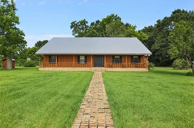 Great value on 29.6 acres with 2280 sf Acadian home, 8 stall barn, pond and fenced for horses! Living room with cathedral ceiling, fireplace and built-in bookcases plus dining room with wood floor. Kitchen with new cabinets, counters, floor and appliances 4 years ago. Front and back porches extend the length of the house. Beautiful rolling land only 15 minutes from Covington.