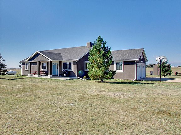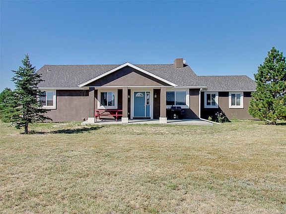 This like new home features main level living and is located on 40 acres of beautiful land with 360 views of the entire front range. You'll be perfectly situated on top of a meadow that gradually slopes down to a peaceful wooded area with a running stream. The home itself was completed less than 10 years ago and has a brand new roof and new exterior paint. Once inside you'll immediately notice the open floor plan with a spacious living area and vaulted ceilings. The kitchen is open to the living area and has a large counter-bar area and hickory cabinets. The master retreat is spacious and hosts a large walk-in closet as well as a 5-piece ensuite master bath with a garden tub. Two additional bedrooms and a full bath complete the main level of this desirable floorplan. The lower level welcomes you with an expansive family room, a wet bar, and a theatre area - together nearly 650sf. There is also a third full bathroom, dedicated laundry room, and two more large bedrooms...