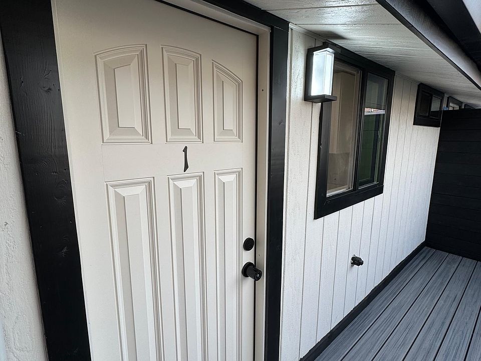Completely remodeled beautiful new studio. All new appliances with a modern kitchen and attractive laminate floors. Luxury bathroom with stylish tile and vanity. Private rear deck for relaxing or entertaining friends. Front porch also includes a brand new composite deck and fence. Brand new air conditioner unit as well for those hot summer days. Single car parking directly in front of unit and onsite laundry facilities Set rate for water and pg&e only $200 No smoking ! No dogs, first and last months rent at signing. References will be helpful