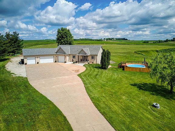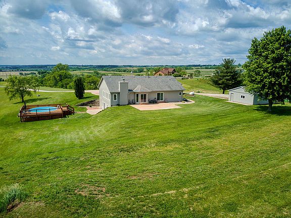 Nothing but birds to hear on 21 acres located 15 mins from metro, all on a hard surface road mins from Lake Ohana. Ranch home with 4 car attached and a 2 car detached garage. Custom trim throughout, wood burning fireplace, vaulted ceilings and surround sound in living room, remodeled en suite off main bedroom includes heated flooring. Lower level walks out to private fenced swimming pool and deck. One bedroom downstairs with an additional 2 non conforming and rec room. Laundry hookups on main floor as well as basement. Exterior features LP siding, new windows, tile drainage system, new insulated garage doors, new sliding glass doors, security system, fiber optic internet lines and views for miles. Plat survey already completed for optional split of acres.
