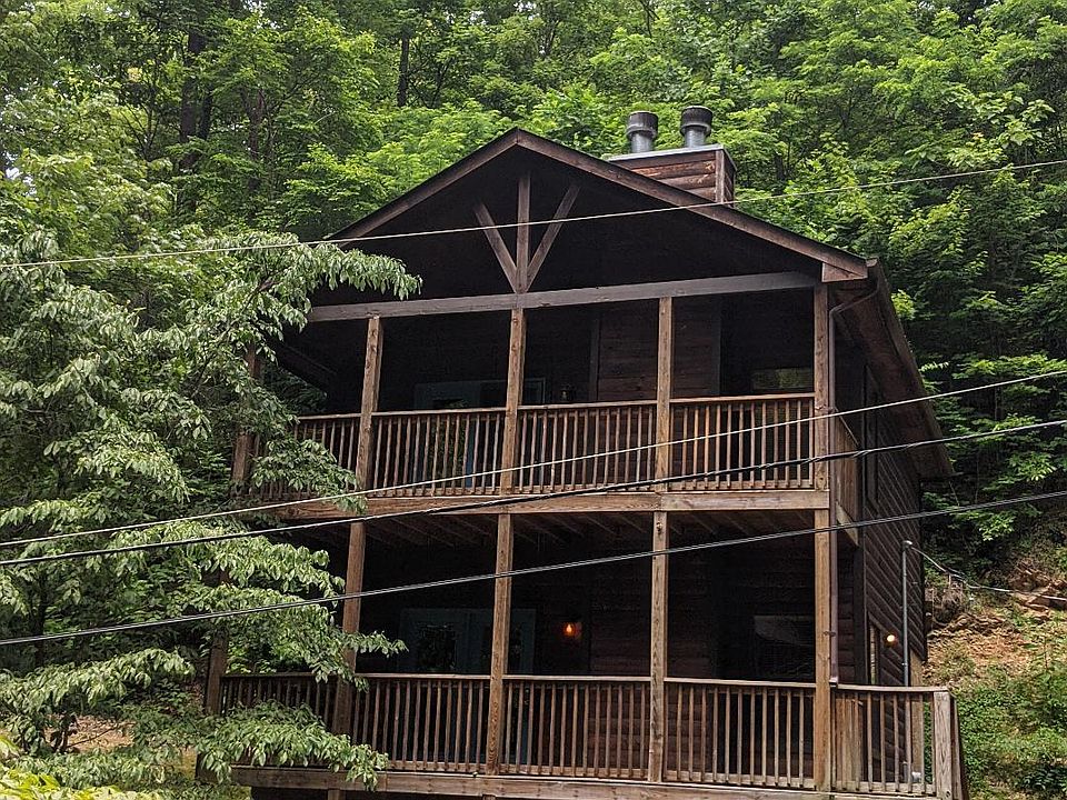 Log cabin, two story. Second floor is a huge master bedroom with an adjacent full size shower and a spa tub inside the bedroom. Bedroom also has a stone stacked wood burning fireplace. A large walkout deck off the master bedroom. Another deck on first floor off the living area. A second stone stacked wood burning fireplace in living area. First floor has a half bath. Also a stackable washer and dryer in a closet by the kitchen. The home is in Sky Harbor, great location. Minutes from Gatlinburg, Pigeon Forge, Sevierville and the Smoky Mountains National Park. Off street parking. No smoking inside the home. No pets. Renter is responsible for utilities. The home is on a well and has a septic. Water is excellent and there is no water bill since home is on a well. Owner/landlord pays the association payments which takes care of all common areas, as well as paving roads, clearing and removing snow, etc. Home available on July 1, 2021. It is a month to month lease. First, last, security deposits required. Income verification. References.