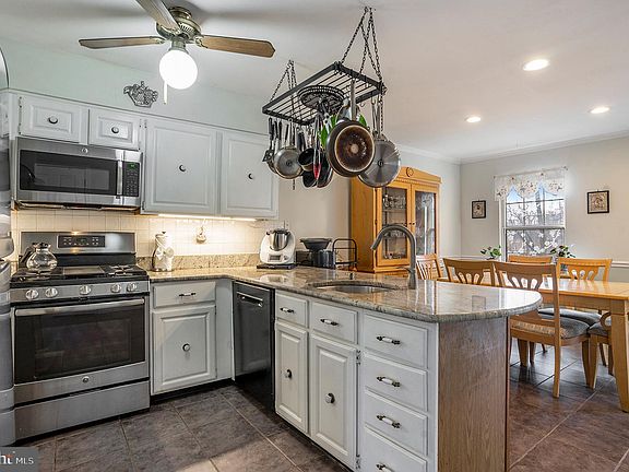 Welcome to 2438 Hillendale Dr! Located in the lovely Regents Park Community, This townhome has been beautifully upgraded and lovingly maintained and is ready for its new owners. New steps lead into the home with a Pella storm door to let in the light. Inside, you'll find recessed lighting, crown moulding and chair rail throughout the main level with neutral paint and 6 panel doors throughout the entire home. T he spacious living room has a large bay window, coat closet near the front door and easy care wood plank luxury vinyl tile (2019). Continue down a hallway past a convenient powder room to the heart of the home - a warm inviting open floor plan perfect for every day living with ceramic tile floors! The kitchen has loads of storage space and gorgeous granite counters, including a long breakfast peninsula. There is a ceiling fan, under cabinet lighting, tiled backsplash, pot rack and deep undermount stainless steel sink with disposal and gooseneck faucet. Appliances include a Bosch dishwasher, stainless Whirlpool refrigerator and stainless GE Adora built-in microwave and gas stove with griddle. Open to the kitchen is a large relaxing area perfect for guests or just enjoying your cup of coffee, giving you plenty of room for a large dining table and chairs. This area has a lovely wood burning fireplace with a raised brick hearth and mantle and sliding doors leading to the deck overlooking green space and a wooded area. A turned staircase with newer carpet leads to the upper levels of this home. On the second floor is a primary suite, two secondary bedrooms with double closets, a hall closet and a second full bath with a linen closet, tile floors and tub with tiled shower surround. The primary suite boasts a light and bright bedroom with a double closet, a make-up area with a walk-in closet and a large bath featuring double sinks, tiled floors, stall shower and Jacuzzi tub. On the third level, even more living space has been created that could be used as a 4th bedroom. And there's more! This home has an expansive finished walk-out basement with a huge family room with recessed lighting, Berber carpet, double window and door accessing a patio and the rear yard. This level also has tons of storage and a laundry area with LG washer and Samsung dryer included. So much has been done to ensure this home is move-in ready and maintenance free for you including a new roof and Heil furnace in 2015, Ecobee thermostat, Bradford White hot water heater and a One Year AHS home warranty for peace of mind. Take advantage of all the conveniences of living in Eagleville with easy access to the train station and commuting routes, parks, dining, shopping and entertainment. Make your appointment today and start packing!