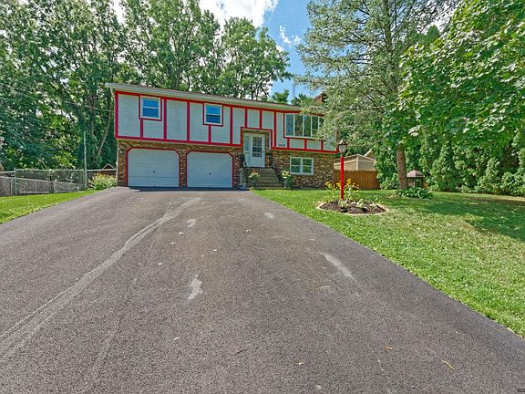Located in the heart of Niskayuna and within walking distance to the co-op and the local CVS sits this 3000+ square-foot updated and expanded raised ranch on a private lot. Generous room sizes t/out include formal living & dining room with hardwood floor's as well as large family room with vaulted ceiling's, 2 skylights, french door, & lots of windows allowing year-round sunshine. Second level features 3 bedrooms and 2 baths. Master suite is huge and features soaring ceilings & an over-sized master bath with jacuzzi tub, dbl cherry sinks, & shower. Lower level features two family rooms, a 4th bedroom, masonry fireplace, attached 2 car garage w/ rear 4 season or additional recreational room. Endless possibilities. Nisky schools and close proximity to all local shopping.