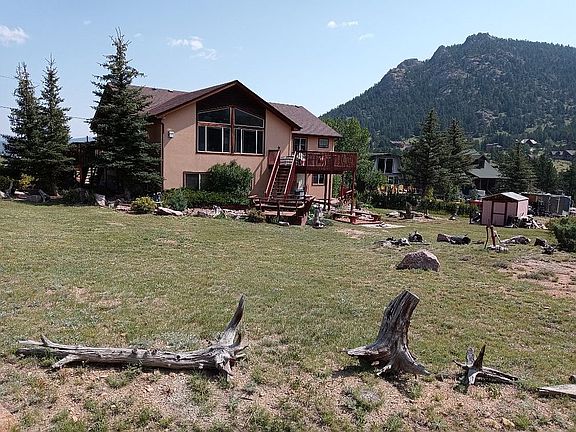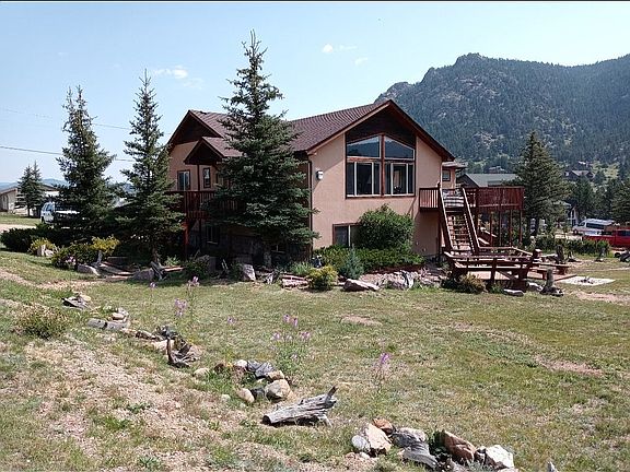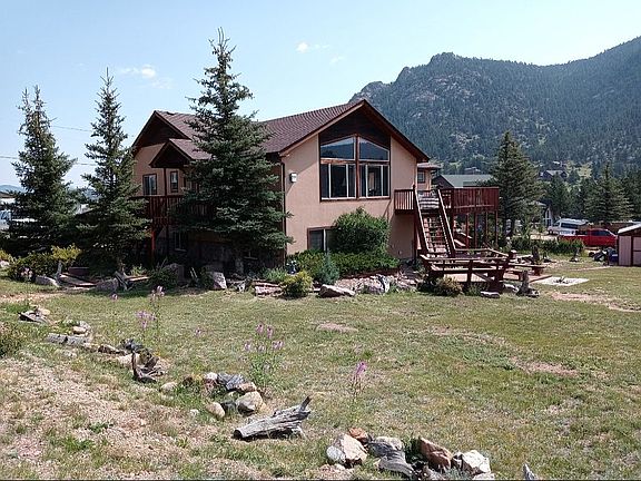 7 BEDROOMS 5 BATHROOMS IN CARRIAGE HILLS IN ESTES PARK Estes Park, Colorado 80517 *****UNOBSTRUCTED, BEAUTIFUL VIEWS***** **Longs Peak, Mt. Meeker, Lily Mountain, Twin Sisters, Kruger Rock** ***360’ Views*** LARGE CORNER LOT This home is COMPLETELY Handicapped Accessible 3 bedroom Mother-In-Law Suite or Mutli-Family Home Downstairs 7 Bedroom, Two to 3 Master Bedrooms 5 Bathrooms, (Two Master Baths) BUILT in 2003 2 Car Attached Garage Storage Shed Gas/Hot Water Baseboard Heat No Maintenance Stucco Siding Low E Windows ALL City Utilities 2 Hot Water Heaters Ceiling Fans in Every room ESTENSIVE ONE OF A KIND TILE In Kitchens, Hallways, Bathrooms, Vanities, Back splashes and Window Sills Marble, Travertine, RARE Imported Granite only found in Finland. (Iridescent opal tones) Lots of Storage and Attic space UPPER LEVEL 4 Bedrooms, 3 Bathrooms (one handicapped accessible) Great Room With One of A Kind Unique Geologist Constructed Gas Fireplace Containing Numerous Geodes, Fossils, Rocks, Crystals from ALL OVER THE United States. This is constructed of items from a Professor of Geology's personal collection acquired over 60 years. LARGE KITCHEN Granite and Ceramic Tile Counter Tops Generous Counter Space Double Ovens Dishwashers Island Chefs’ stove Top Pantry Oak Cabinets Under cabinet toe lights Heated Floors Walk in Laundry Room with Soaking Sink and Fixed Fold down Ironing Board LARGE Master Bedroom With Cathedral Ceiling and VERY LARGE Walk In Closet Master Bath With Heated Floors, Skylight, Jetted Bathtub, and Shower Large Redwood Decks With Natural Gas For Grills Upstairs Deck and Lower Patio LOWER LEVEL 1425 Square Feet 3 Bedrooms 2 Full Baths Master Bedroom With Walk In Closet Master Bathroom With Marble Tile, Jetted Tub and Shower Large Living Room Large Kitchen With Hickory Cabinets Dishwasher Granite Tile and Imported Rare Granite from Finland Countertops Laundry Space With Storage Hot Tub Deck With Wiring Installed Nice Size Shop or “Man Cave” attached to Garage Large Patio, Decks, and Firepit Extra Room with Utility Sink and Ample Shelving General Information: Built in 2003, 3,525 Square Feet, 7 Bedrooms, 5 baths, 2 Car Garage on Lower levk/and adjacent Workshop, Storage Area, Gas heat, Stucco Siding, Low-E Windows, City Utilities, Passive Solar, Terrific Views, Two Hot Water Heaters, Ceiling Fans throughout, Extensive Tile work in Kitchens and Bathrooms, Landscaping, Ample Parking. Neighborhood Description Carriage Hills consists of 500 individual home sites located three miles outside the city limits. Utilities are provided by the Town of Estes Park; and Excel Energy.