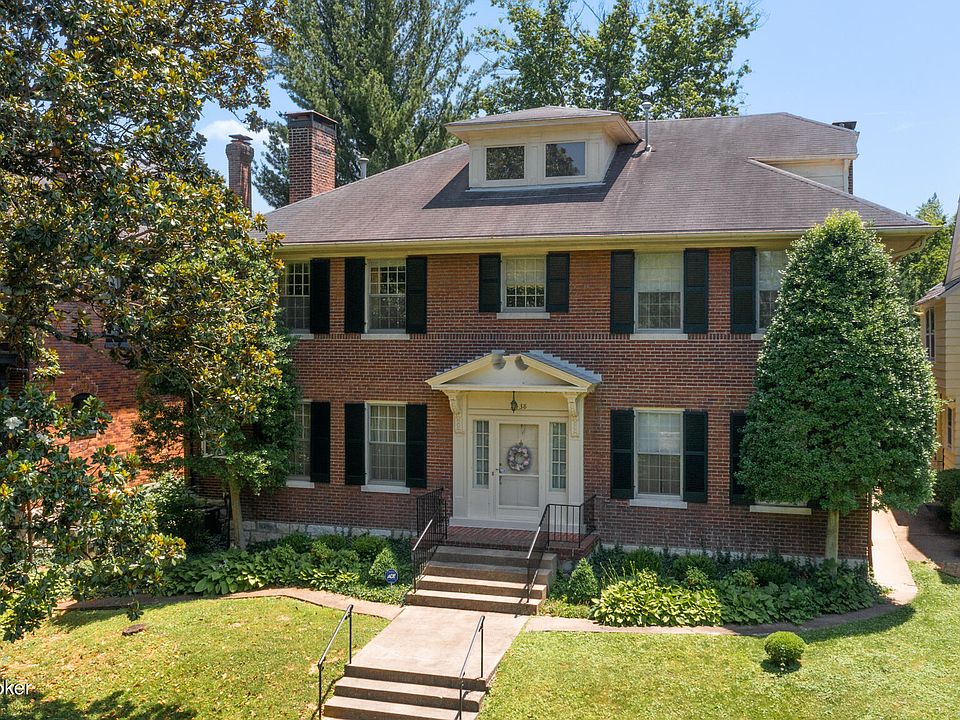Welcome to 2438 Longest Ave. This two owner home features possibly the best backyard in all of Cherokee Triangle. Perched on a hill overlooking Amelia Place, this 2 1/2 story is gracious and elegant. The alley entrance leads to easy access to the premises. The carriage house offers a 2 car garage and a large finished space (20'x18') that has a wall heat/air unit. 4 additional parking pads are in the back. The 260' depth of this lot affords the large backyard with a covered porch, built-in pond and a stunning holly shrub wall. The home features a center hall entrance with a first floor library and laundry. Grand living room with working fireplace, built-in bookcases, large dining room, huge serving pantry (scullery), vintage kitchen & sunroom. A multitude of closets and storage throughout rr