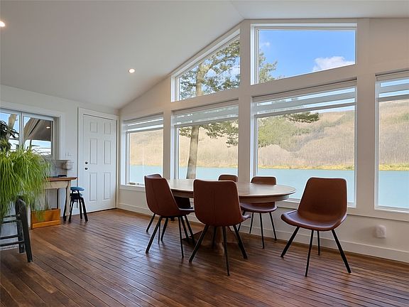 Tucked among mature pines, the beautifully updated main residence is designed for relaxed lakeside living. The open-concept living area is wrapped in windows that flood the space with natural light and frame uninterrupted views of Loon Lake’s shimmering waters. Vaulted ceilings and warm wood floors create a rustic-modern feel, while the inviting kitchen blends cottage charm with functionality — complete with a large apron-front sink, butcher block counters, and white shaker cabinetry.