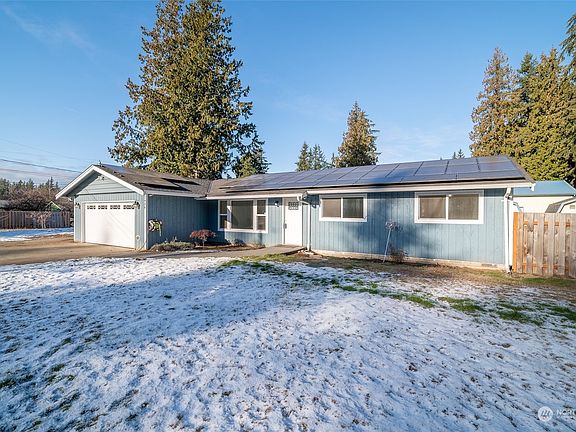Updated rambler on a large lot in prime central county location! Energy efficient home ft 2 living rooms, dining room, open kitchen, large 2 car garage, & en suite bathroom off the primary bedroom. Huge solar array on the roof - you will have low to no electric bill every month! Fenced on 3 sides w/ a large front yard & open area to the right of the home - you may be able to build a shop! Spacious 20x30 concrete deck in the backyard with a brick firepit for cozy evenings and entertaining. Living room off the kitchen has hookup for a stove if you want, or keep using electric heaters w/ free solar energy. Quiet neighborhood w/ easy 20 min drive to Bellingham and 12 min to the border. Includes standby whole home generator w/ auto transfer.