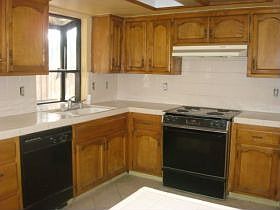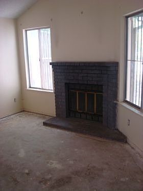 With rehab this could be a very nice family home. Open floor plan with four bedrooms & two baths. Fireplace in living room. Very functional kitchen. Large covered patio.Being sold as is.