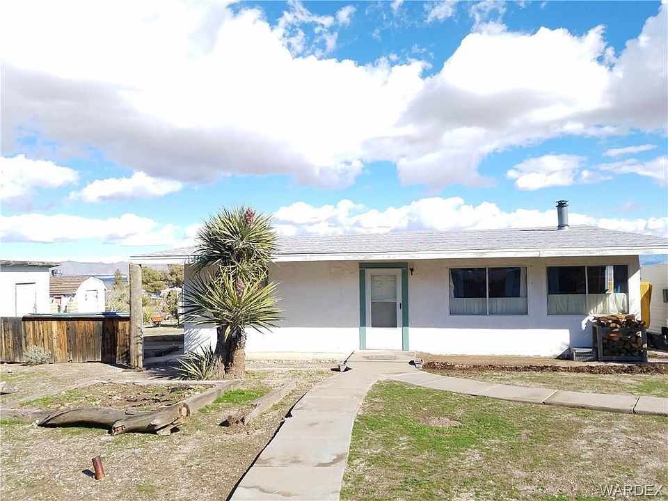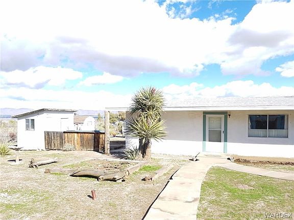 This home is set facing the beautiful mountains and wilderness area of Mt. Nutt in the highly demanded Unit 12 in Golden Valley. 1 bd. 1 ba. includes furnishing throughout, newer carpet, a cozy fireplace and an electric Amish heater, 2 attic areas for extra storage, walk in closet and ceiling fan. Kitchen has a permanent island, plenty of cabinet space and refrigerator and microwave oven stays. Outside there is a front porch to enjoy the beautiful views, a garden area ready for you to add your plants or vegetables, a 12 x 36 carport, 8x10 shed and pump house for 2,000 gallon underground water tank. There is a water haul trailer that stays with the home to haul water or you can have water delivered to you. Very quaint home with a cabin feeling to it. Come and see for yourself. Just contact listing office for your viewing today.