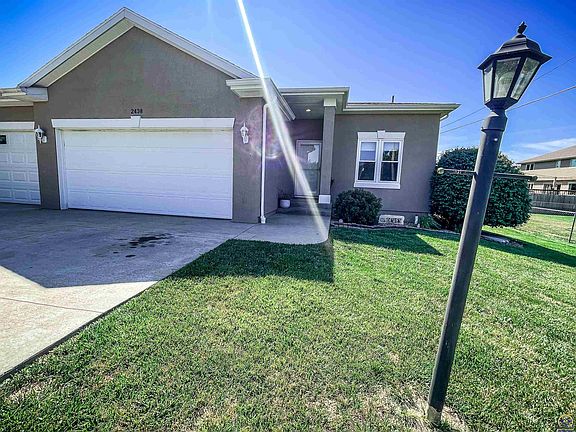 Discover this wonderful 2 bedroom, 2 bathroom twin home nestled within the sought-after Washburn Rural School District. Boasting a prime location in proximity to shopping & dining, this property offers the ideal blend of convenience & comfort. The residence is thoughtfully situated adjacent to a picturesque park with a scenic walking trail, tennis courts, a playground area, basketball facilities, & shaded picnic tables. Step inside to experience the allure of brand new flooring adorning the entire main floor. The spacious kitchen showcases elegant butcher block counters & is complemented by a remarkable custom pantry featuring convenient roll-out shelves, making organization a breeze. Adjacent to the kitchen is a wonderful four seasons room. The expansive living room sets the stage for delightful gatherings, providing ample space to entertain both family & friends. On the main floor, you'll find a primary suite that features a generously sized walk-in closet, offering both luxury & practicality. Enhancing daily living, a main floor laundry room positioned in close proximity to the bedrooms adds an extra layer of convenience to your routine. The large, full, unfinished basement invites you to explore its untapped potential, allowing you to tailor the space to your unique preferences & needs. Whether you're a growing family seeking room to flourish or empty nesters looking to downsize in style, this home presents the perfect opportunity to embark on a new chapter of life.