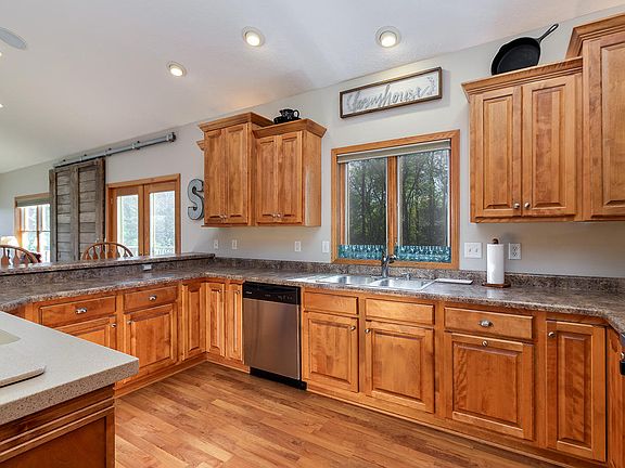 This beautiful spacious ranch with an open concept includes 4 bedrooms, with a non-conforming 5th bedroom, 4 bathrooms and a 3 car garage. Enjoy conversing with your family and friends as you prepare your meals on the extra large gas stove while they sit around the large breakfast bar that overlooks the living room. The living room includes a cathedral ceiling and gas fireplace. The master suite includes a large bedroom with tray ceilings,and can accomodate large bedroom furniture. Enjoy the master bath with dual sinks, his & her closets, cathedral ceilings, shower and a whirlpool tub. If you are needing a mother-in-law's quarters this home is for you, with 2 bedrooms having their own baths. This home includes main floor laundry, large deck overlooking the woods, hot tub, and a large