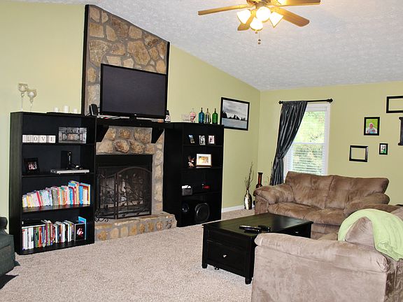 This wonderful home features a HUGE corner lot w/a beautiful front porch to enjoy it. In addition to the large 2 car garage, there is an additional over-sized garage w/power that can be used for storage, a boat or a workshop! In the winter you could gather around the fire put, or in the huge living room around the stone fireplace. Great man-cave/craft/playroom in the basement. The home is well maintained & has a new 6" gutters w/gutter guards, upgraded toilets, new kitchen sink, relatively new water heater & recent A/C service. No HOA, close to I-75- Great location!