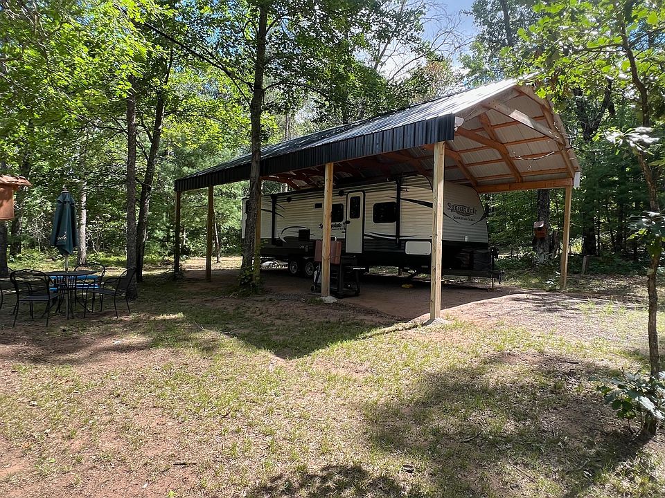 Nicely wooded 3 Acre lot with Building/Camping site already cleared! New Drilled Well! New Septic System! Camper Size Car Port!!, utility shed (the hard work is done!).. Paved Roads all the way to the property!