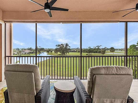 Meet Esplanade - where resort-style living meets everyday comfort and incredible value. This 3rd floor condo offers nearly 1,800sf of beautifully designed living space, complete with stunning golf course, lake, and glorious Florida sunset views. Bright, spacious, and move-in ready, this 2 bedroom + den, 2 bath residence with private garage lives large with an open-concept layout, including 10ft ceilings, split floor plan, and high-end finishes throughout. A well-appointed galley kitchen features 42” cabinets, solid surface counters, newer streak-free stainless appliances, decorative tile backsplash, and upgraded pendant lighting over the breakfast bar that opens to the comfortable living room. A charming breakfast nook at the other end offers a peaceful start to your day with views of the fairway, while the expansive dining area with stunning new chandelier above easily seats eight—perfect for entertaining. Southern exposure bathes the large living room with natural light from wide sliding doors. Step out to the spacious screened porch and relax watching the sights and sounds of Florida wildlife, golfers on the course, several tranquil lakes, and postcard-worthy sunsets! This unit has one of the premier views in Esplanade. The inviting outdoor space is also accessible from the oversized primary suite, which features dual walk-in closets and a well-designed ensuite bath with dual vanities, a soaking tub, and walk-in shower. A private guest suite is located on the opposite side of the unit with an adjacent full bath, while a versatile den can be a third sleeping area, home office, or study. Other desirable upgrades include all-tile flooring throughout, new lighting fixtures, and inside laundry room with added cabinetry. One of the most valuable features is the enormous 2+ car private garage at ground level. Larger than in most homes, it provides exceptional space for vehicles, golf cart, bikes, beach gear, or even a workshop. Whether you're seeking a seasonal retreat or a full-time residence, this beautiful condo offers the ease of low-maintenance with the feel of a single-family home. Some furnishings are also available - ask for details. This is a wonderful community with well-maintained buildings, private heated pool and spa and it’s own gated entry. Don’t miss this opportunity to own one of the best values in the area—come take a look!