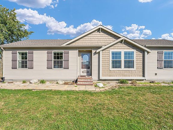 Welcome to your dream home! This delightful 3-bedroom, 2-bathroom residence offers 1,460 sq ft of comfortable living space, nestled on nearly 2 sprawling acres of farmland. Step inside to find an inviting open-concept layout that seamlessly connects the living, dining, and kitchen areas, perfect for entertaining friends and family. The well-appointed kitchen features ample cabinetry and counter space. The primary bedroom is complete with an ensuite bathroom and generous closet space. Outside, the large yard will fit all of your needs. With a little TLC, you could have your dream home!
