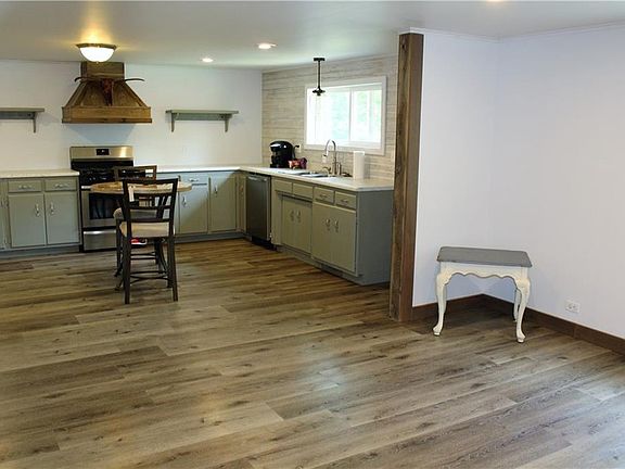 Perfect fishing or getaway cabin! Beautiful flooring has been installed and ready for your weekend activities! Detached garage for your boat/toys. This delightful 2 bedroom 1 bath cabin has been remodeled with exquisite taste. Open kitchen with new 5 burner gas Frigidaire stove and dishwasher. Plenty of counter space and a cow head hood! Second bedroom would make a great guest room or office. A walk in shower is ready for you after a long day on the lake. Enjoy your evening on the screened in porch.