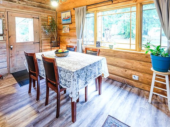 Attractive Park Like Setting for this wonderful log home with Accessory Dwelling Unit (ADU) and open floor plans, detached garage and plenty of room for adding the shop or barn building. New roofs, triple and double pane windows, wood floors, 2nd floor bedroom, bath and loft area. Lots of natural light in both the home and ADU. Front grass area is hidden from road. Room for circular drive. Newer Pump House w/shared water agreement.