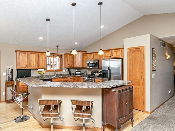 Your spacious foyer with a hickory floor and natural light greet you as you enter this must have home. The kitchen is amazing and designed for entertaining with its wrap around island, duel-fuel convection microwave & range, pantry, beechwood cabinets and hickory flooring. Whistle a happy tune as you grill out on your large two level deck or relax under your pergola. Wonderful backyard views to be enjoyed in every season. Your master suite is large with master bath and walk-in closet. The lower level will delight your family and guests with a cozy fireplace, a custom 120-inch theater with an HD projector for movie times, and room for a ping pong or pool table for even more fun! 2 panel doors throughout. 4 spacious bedrooms, 3 large baths and an oversized 3 car garage with workshop. Easy access to anywhere in Rochester, less then 10 minutes to Mayo Clinic.