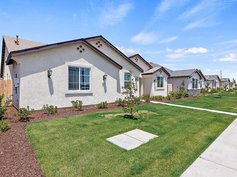 Located minutes away from the charming downtown Draper St in Kingsburg, this lovely single story Madrid floorplan is 2751 sq ft and boasts 4 bedrooms, 2.5 bathrooms, and a huge, 651 sq ft bonus room/den that would be perfect for a game room or home theater! This home is adorned with coastal grey cabinetry, upgraded granite countertops, shutters, designer crown moulding, and lots of wood-look tile flooring everywhere but in the bedrooms and closets. The kitchen features linear tile backsplash and a large island with undermount Kohler vault single basin sink and is open to the dining room and great room. Enjoy the private owner's Suite and spa-like tiled shower in the adjoining bathroom. This home has a covered patio connected to the large backyard, room enough for a pool and/or a BBQ area. Hurry now, Summerlyn Estates is closing out - ask about our neighborhood closeout sale!