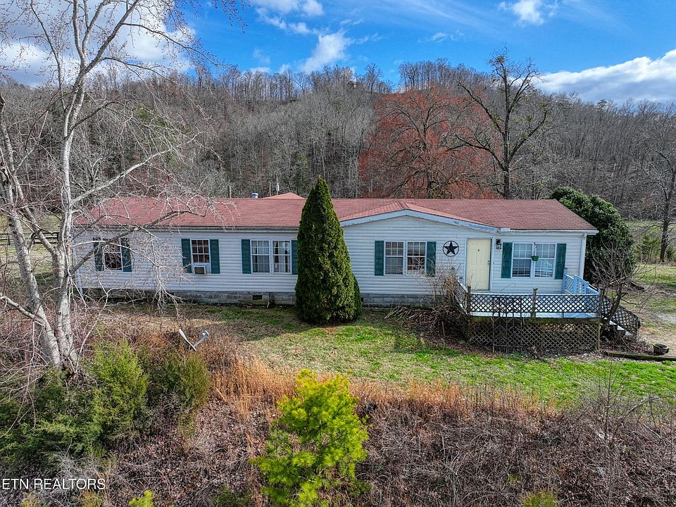 You will love this beautiful, move-in ready, mobile home on a permanent foundation. Placed on a peaceful country setting of .66 unrestricted acres, and over 1800sf, this home has 3BR's and 2BA's (septic permitted for two bedrooms). The open layout has hardwood floors in the living area, kitchen and hallway. The vaulted ceiling in the living area gives the feel of such a generous space. The kitchen has an abundance of freshly painted cabinets with a small island. The large laundry/utility room leads to a refreshing sunroom, with beautiful widows all the way around. The master bedroom has an Ensuite bathroom with an oversized walk-in closet, in addition to two more closets in the bedroom itself. BR's 2 and 3 also have large closets! Beautiful new LVP Flooring in the hallway, laundry room and in the main bedroom. This home offers a brand new HVAC, new plumbing, new ceiling fans, a new back landing and steps off of the sunroom, a new dishwasher, 1 yr old water heater, and a newer stove. You can walk to the lake (Ft. Loudon) just down the road!! Close to Tellico Lake, Chilhowee Lake, Kiker Bottoms Wildlife Refuge, as well as local restaurants in the Maryville area or Loudon. Just 45 mins to Knoxville, close to Townsend and The Great Smoky Mountains National Park. Being sold AS IS. The large entertainment center in the living room, the nice desk in the sunroom, treehouse and playset outside, refrigerator and pantry in Laundry Room convey. The washer & dryer can be purchased separately.