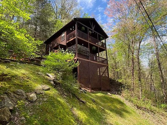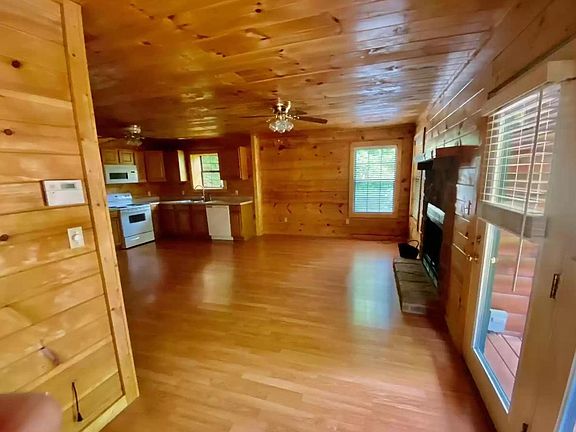 The home is a two story log cabin. The cabin has two decks, upper and lower that spans the entire front of the home. Second floor consists entirely of the large master bedroom, which has a jacuzzi tub inside as well as a stacked stone wood burning fireplace. The bedroom also has a small area which can be used for a desk or small home office. The full bath is just off the master bedroom. The first floor consists of a living, dining room combination area and the kitchen. There is also a half bath on first floor and a small room for a washer and dryer. The living room also has a stacked stone wood burning fireplace and double glass doors leading out to a deck. The cabin does have washer and drier hookups but tenant has to bring their own washer and dryer. Plenty of off street parking and area for an outdoor fire pit and chairs. The cabin is located in Sky Harbor, centrally located, sought after location, just between Gatlinburg and Pigeon Forge and minutes from the Smoky Mountain National Park, off the spur. Three miles from the home and you're in town. As you enter the residential community, you will find a beautiful pond with picnic tables, perfect for an outdoor picnic or a nice stroll. Sky Harbor has an association which maintains common areas, roads, etc. Landlord pays the association fees. Owner/landlord lives in Sevierville so the tenant has immediate contact/response. Please complete an application on Zillow if you are interested in this property. If the property is still active, it is available. No smoking inside the home. No pets allowed. Security deposit and last month required. Tenant pays all utilities. No water bill, the home is on well water. High speed internet is available in the area via Spectrum. This property will be rented to someone that will occupy the home. We will NOT rent to anyone interested in subletting or overnight renting on Airbnb or VRBO.