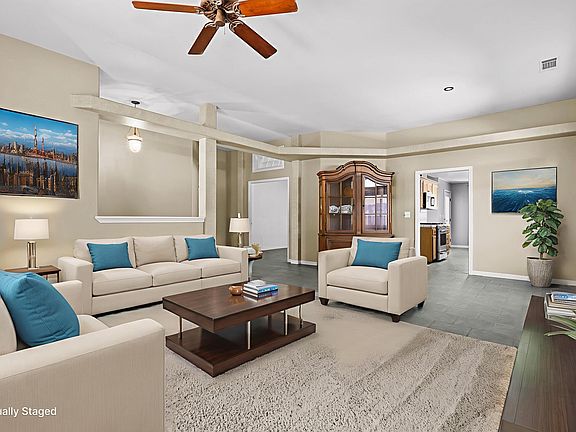 Welcome to this beautifully maintained 4-bedroom, 2-bathroom home in a desirable neighborhood. High ceilings and skylights fill the interior with natural light. Energy efficiency is a standout feature with extra attic insulation, newer dual-pane windows (just 1.5 years old), and a nearly new HVAC system (only 1 year old). Enjoy outdoor living under the covered patio or take a refreshing dip in the saltwater pool. A majestic evergreen tree in the front yard provides generous shade and curb appeal. The property also offers convenient side parking for your RV or boat. The roof is just 5 years old, offering peace of mind for years to come. Scenic walking trails at Clover Creek Preserve are nearby too.