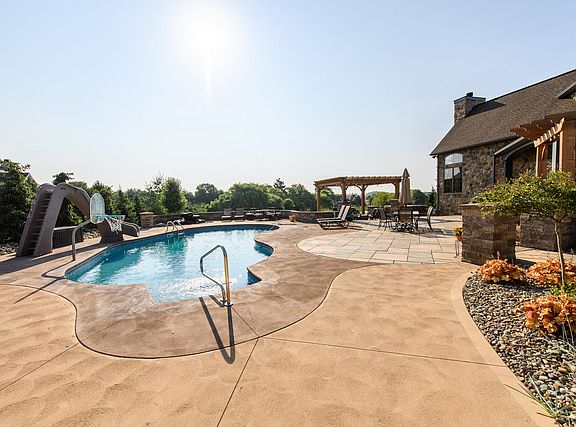 Spanning over 7500 total square feet, this magnificent residence situated on over one acre is a haven for entertaining . The grand entryway draws you into the open layout, while the 2-story Great Room with a large stone fireplace is the dramatic focal point to the main level. The tremendous Chef’s Kitchen highlights both dramatic stone work and reclaimed Ohio barn beams to create a spectacular family meeting point. The grand kitchen island, top-of-the-line stainless steel appliances, double oven and huge walk-in pantry will inspire your inner chef. The main level also boasts a separate Dining Room with a unique hand-painted ceiling, a turret-shaped Home Office with French doors, wall-to-wall built ins and an octagonal trayed ceiling, a Guest Room with full bath, a large Laundry Room, a Powder Room and a “dream-come-true” Mud Room that organizes even the busiest family in town. Two extra wide staircases lead to the private bedroom suites. The Master Bedroom is a retreat including French doors, a sitting room, two separate walk-in closets and a bath including a soaking tub, large shower, and separate toilet room. There are four additional Bedrooms , two with their own bathroom and two with an adjoined Jack-and-Jill bathroom on this level. The second level also has a large Bonus Room with a turret shaped area and a ladder up to a secret loft where playtime becomes a special adventure. The lower level hosts a large Rec Room, a custom built bar, a Full Bath, a Weight Room, a large Storage Room, a “answer –to-every-mom’s prayers” Craft Room and a fabulous Theater Room for private movie showings or to watch the big game with friends! The great outdoors can be yours when you step outside. The custom in-ground pool will provide a summer sanctuary and features two pergolas and a stone bar while the pond on the property allows the idea of a summer cabin to be right at home as you fish and kayak during the day or just simply star gaze at night . Other amenities include a three-car garage, Vacu-Flow, hardwood floors, and custom tile. Convenient to Akron Canton airport and nearby shops and dining. Award winning North Canton City Schools. City life and country life merge together to create your next home. Don’t miss this unique opportunity. Call to schedule a viewing today!
