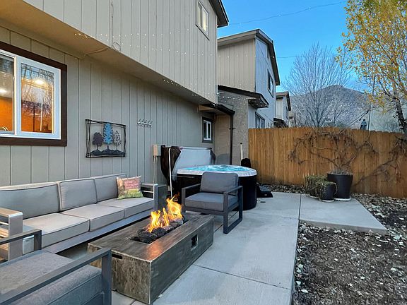 This beautifully appointed home features 2 primary suites and a newly upgraded kitchen with Stainless Steel LG appliances, quartz countertops, tile backsplash, wooden cabinetry, recessed lighting, space-efficient pantry and a gas range. Your new home also comes with new tile floors throughout the first floor, and wood floors upstairs. The vaulted ceiling is a work of art, with a stunning wood slat treatment. The outdoor space features a campground feel backyard, with a large patio, hot tub, wood chips, a well-established & newly planted trees for extra privacy, and a side gate that leads to the rolling green community lawn. Simply a perfect place to unwind. Appreciate the benefits of a roomy 2-car attached garage. This is a rare opportunity, be prepared for love at first sight!