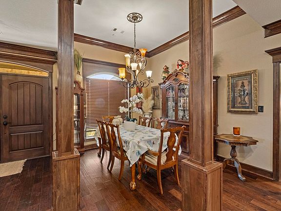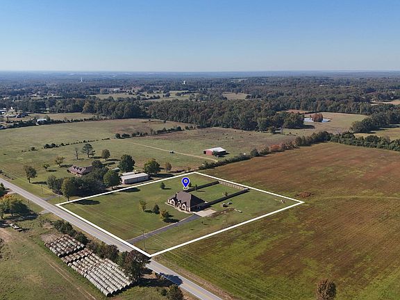 Beautiful custom built home sitting on 4 acres with Highway Frontage. 3 bed, 2.5 ba plus office. Gourmet kitchen with granite countertops and professional appliances, hardwood flooring through out, covered patio, safe room/laundry combo, large pantry and stained Crown/trim through out. New updates within: Asphalt driveway, privacy fence, large concrete patio and all new landscape. The home is wired for a generator but generator will not convey. Check out the interior/exterior video tour.