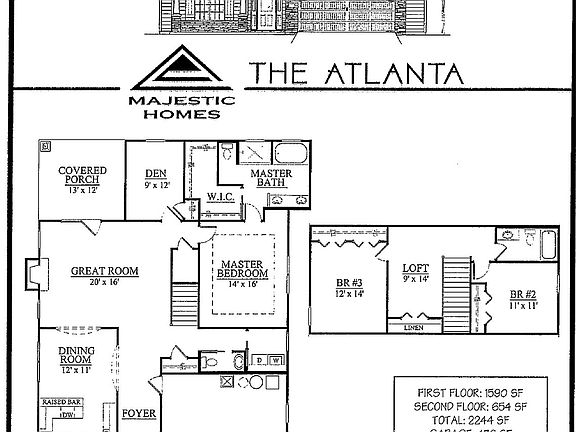 New 4 BR 2.5 bath Majestic Home in Prairie Farms. The popular Atlanta Floor plan is loaded with everything you would want in a new home with 2244 sq. ft. and 12x13 Covered Porch. Large open concept with large foyer, kitchen and dining room in front and large living room with gas log fireplace. Kitchen offers raised bar top, ceramic back splash in kitchen along with tile floors and stainless steel appliances. Master on main level has huge walk in closet and master bath with garden tub and separate custom tile shower, double bowl vanity, and tile floor. Main level also has half bath, another bedroom or den and laundry room. Upstairs offers 2 additional bedrooms and full bath along with loft area. 2 car att. garage. Front yard has irrigation system and will be sodded in front.