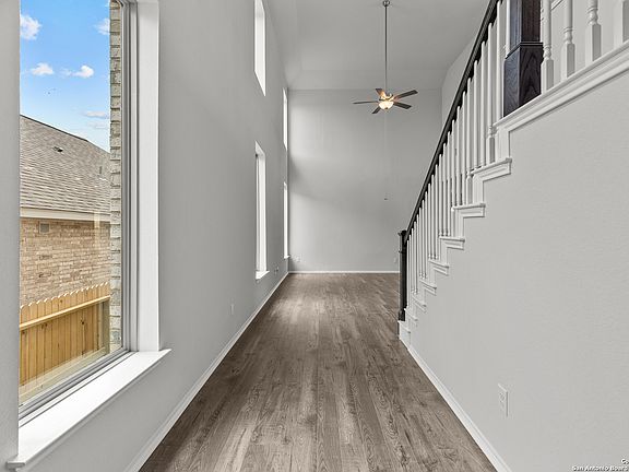 Welcome to the highly sought-after Bloomburg floor plan! This stunning home offers 2,475 sq. ft. of living space, featuring 4 bedrooms, 3 full bathrooms, and a spacious Texas-sized patio-perfect for outdoor entertaining. As you step into this open-concept home, you'll immediately be captivated by the soaring ceilings and an abundance of natural light that fills the space, creating an inviting and airy atmosphere. The dramatic staircase adds a touch of elegance, making a bold statement as you enter. A downstairs guest suite, conveniently located next to a full bath, provides the perfect retreat for visiting friends or family. The expansive family room, open to the second floor, is ideal for gatherings, offering a sense of openness and connection. The large island kitchen, equipped with stainless steel built-in appliances, is sure to delight any chef. The adjoining dining area, flanked by a large bank of windows, bathes the space in natural light, creating the perfect spot to share meals and make memories with loved ones. The spacious master bedroom, featuring a bowed box window, provides a serene retreat to start and end your day in comfort. Upstairs, the bright and airy game room offers a cozy space for family movie nights and casual hangouts. The two generously sized upstairs bedrooms each feature large walk-in closets, providing ample space for kids to organize their treasures. This incredible floor plan is designed for comfort, style, and functionality-schedule your visit today and discover your new dream home!