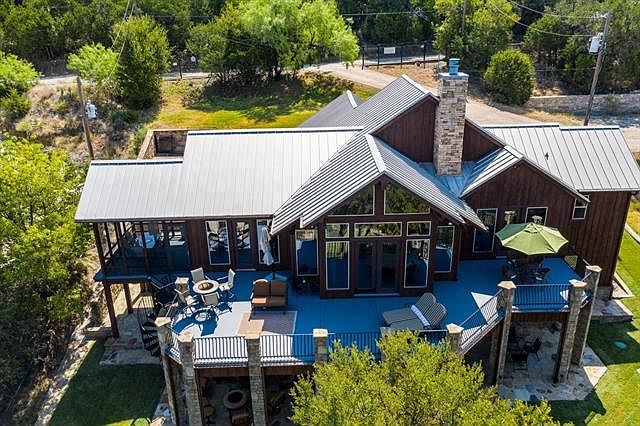 Breathtaking views overlooking the broadway of Possum Kingdom Lake. Stunning custom home nestled in the trees with double deck covered patios to enjoy the serenity of lake living. Top of the line marine grade aluminum deck features 2 boat slips, dual PWC stand, sun deck and storage boxes. The rustic rock and cedar home features abundant windows to enjoy the view, gourmet kitchen with fabulous commercial gas range, 2 master suites, screened dining, ample gameroom, and tons of storage. This home comes fully furnished!! Close to amenities such as The Cliff's resort and well stocked grocery store. This home is truly a retreat and a luxury TREAT!