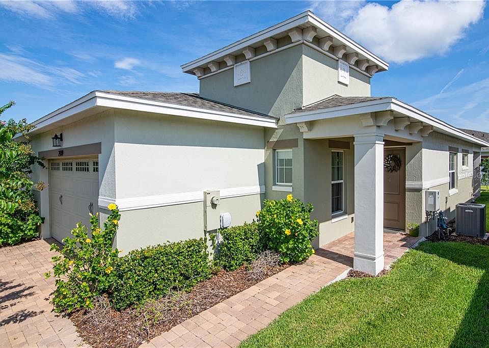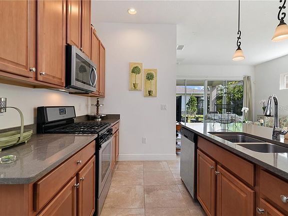 Resort Lifestyle At An Affordable Price! Twin Lakes ~ The Premier 55+ Gated, Waterfront Community for Active Adults. This Beautifully Appointed Home Includes a Brick Paved Covered Lanai, Upgraded Tile Throughout Main Living Areas and Upgraded Kitchen Countertops & Island. 2 Bedroom, 2 Bath, 1.5 Car Garage - Open Floor Plan Including Great Room with Kitchen, Dining & Living Rooms, Large Master Suite, 2nd Bedroom, Guest Bath, Full Laundry Room & Lanai. This Home Features a Neutral Pallet and LED Lighting Throughout, Moen Kitchen & Bath Fixtures, Recessed Lighting, Highly Energy Efficient by Design. Kitchen with Granite Countertops, 42" Cabinets and Brushed Nickel Hardware. Large Island Offers Lots of Surface Space and Seating, Storage, Sink & Pendant Lighting. Stainless Appliances Included. Master Suite Features Decorative Tray Ceiling, Oversized Walk-In Shower with Seating and Glass Enclosure, Dual Sinks with Stone Countertop, Private Washroom & Large Walk-In Closet. 9x15 Domestic Suite Includes Washer & Dryer, Utility Tub and Cabinets for Additional Storage with Stone Countertops. Spacious Covered Lanai with Brick Pavers! HOA Fees Include Exterior Maintenance & All Amenities - Fitness Center, Pools, Games Room, Tennis & Pickleball Courts, Boating, Kayaking, 20,000 Sq Ft Lakefront Clubhouse Under Construction, Planned Activities - just to name a few!! Twin Lakes is Located off Hickory Tree Road, 1 Mi South of 192. Convenient to Shopping, Restaurants, Major Roadways Including the Florida Turnpike, Attractions, Beaches, Airport & More.