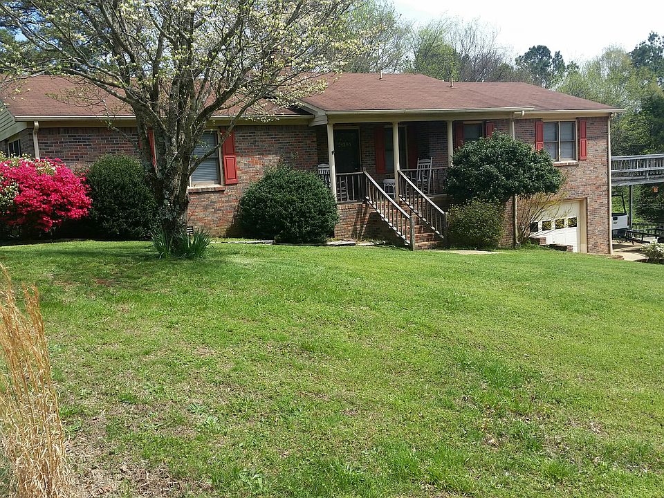 Nice 4 bedroom home in Elkmont Rural Village. Many updates - new paint, flooring, appliances, HVAC unit, water heater, sinks, fixtures, garage door. Large living room with wood-burning fireplace. Large master with access to deck. Basement is heated and cooled. Wood-burning furnace and bar conveys. Large deck overlooking the yard with nice views. Detached building for storage. All appliances remain. Village amenities include clubhouse, tennis, playground, walking trail,horse barn and stables. Also has city sewer.