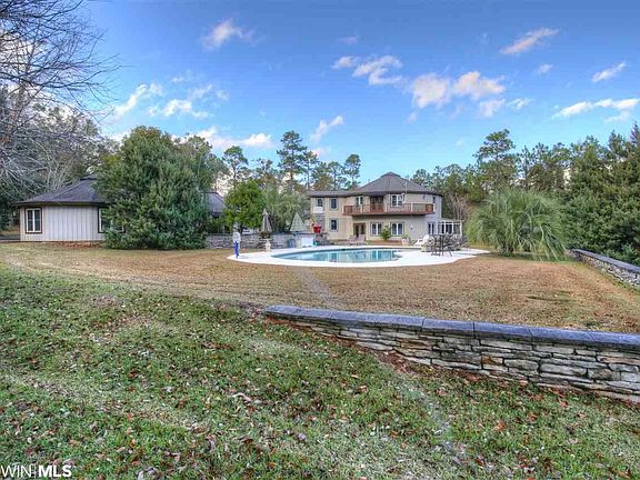 This is a hidden Gem with incredible privacy. Tremendous opportunity to own 43 acres of magnificent property with over 100 Oaks, beautifully maintained and open for your own expansion. As you wind through the woods, cross the bridge, you focus on a large pond full of bass, catfish and brim with a fountain which is on a timer. It also has frontage on a tributary of the Fish River. This nearly 6000 square foot home was custom built by the owner with many separated entertaining areas. Main level master suite with oversized master bath featuring soaking tub plus oversized walk-in shower. The kitchen expands to the oversized den and breakfast area but has all the bells and whistles, leathered granite, natural stone floor, copper sink, and all the top end appliances. Rec room accommodates a crowd with another full kitchen. The home focuses on the kidney shape saltwater pool which heated by solar. On the grounds is a fenced in chicken coop, barn which is heated and cooled, and tennis courts. Yes, this is a special property for the right person who wants complete privacy.