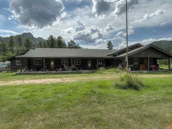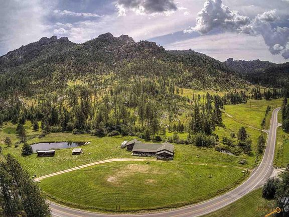 2 Ponds, nearly 7 acres, creek frontage and large log home on the edge of Custer State Park. A short drive to Sylvan Lake and all the Black Hills have to offer, this property offers a rare potential for recreation, bed and breakfast, hunting lodge or year-round residence. Incredible potential with your vision and a some updates/maintenance. Each of the 4 bedrooms has an attached bathroom. The 11x13 laundry room with kitchennette. Several exterior doors placed for separate living quarters. The kitchen, dining room and living room are wide open creating a 50' x 26' that's perfect for large gatherings. Lots of storage in the 170 sq ft attached shed and 2 3-sided sheds. Schedule your tour today!