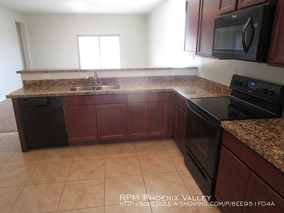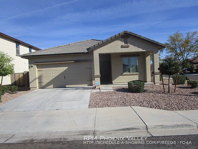 Spacious main living area with open concept kitchen, dining and den. Fully equipped kitchen with all appliances, breakfast bar, granite counter tops, recessed lighting, custom wood cabinets and pantry. Split floor plan! Two nice sized guest bedrooms with side-by-side closets share a guest bath. Full laundry room with washer & dryer hook ups. Master suite offering a private bath with separate stand up shower, garden tub and walk in closet. Easy to maintain desert landscaping front & back. View fence in the back that opens to common grassy area. Community offers many amenities including a community park with basketball courts, children's playground, BBQ areas, picnic Ramada and walking trails. Home is friendly to a max of two spayed/neutered pets with additional $250 per pet fee. Sorry no section 8. We do not list on CRAIGSLIST SO IF YOU SEE IT ON THERE IT IS A SCAM $50 application fee for up to 2 adults. Base rent does not include 5% monthly admin fee. Disposal Pets Allowed Range/Stove