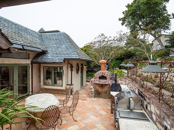 Ocean Views, timeless charm, and exquisite craftsmanship are perfectly married here in a magical Carmel location. Light, bright and full of designer details, this immaculately maintained 4 bedroom, 2 bath home on an oversized 10,000 sft lot is highlighted by idyllic outdoor spaces, open grass areas, hardwood floors, vaulted ceilings, custom chandeliers, three fireplaces, an indoor laundry room, and wine storage area. A gracious stone patio and dining area with a full outdoor kitchen complimented by a wood burning pizza oven and grill are sure to keep you and your guests entertained .This lovely Carmel estate sits high upon a hill, offering maximum privacy and impressive ocean views.