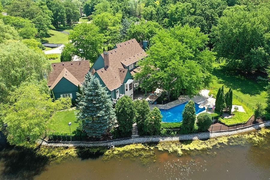 Picturesque cul-de-sac and lakefront setting with over 300-feet of shoreline plus stunning pool & patio for outdoor fun and custom built French Normandy 4 Bedroom & 4.1 Bathroom home will take your breath away! Meticulously maintained by the original owner with a prime lakefront setting has created years of memories of swimming, fishing, skating and parties for all ages. The terraced gardens, walkway, masterful brickwork, bay windows, charming dormer windows set the tone for the character to be found throughout this stunning home featuring a flowing floorplan with a two story foyer, curved staircase, hardwood flooring, a back staircase, extensive moldings and trimwork throughout. The Foyer opens to the formal Living Room, spacious Dining Room or private Den for your home office. The gourmet Kitchen steals the show with creamy white cabinetry with built-in storage features, large center island, Viking range, oversized SubZero, refrigeration drawers, pantry storage and much more. The SunRoom/Breakfast Room with coffered beamed beadboard ceiling and transom windows is sure to be a year round favorite to enjoy your morning coffee. French doors lead to a balcony which enjoys the pool, patio and lake views. The Family Room boasts a cathedral beamed ceiling, oak cabinetry, wainscoting, 6-inch posts, built-in TV, brick fireplace, a bay window and a game table area and then a special laundry room area which could also serve as a great space for serving for large parties or craftroom. A luxurious first floor master suite completes the main level and features a bathroom with heated floors, a double vanity, whirlpool tub, walk-in shower, walk-in closet organizers and a private deck that leads to the pool area. The upper level includes a flexible layout for either two or three bedrooms. One bedroom is ensuite, there is another full bathroom in the hall plus a cozy loft area for homework or kids play area. You will love the lower level with a TV room with a fireplace, Pub-like wet bar, Billiards area, 2nd kitchen, full bath, dance floor, excellent storage and a secret door. French doors lead to the patio with outdoors rooms including a covered sitting area, dinning area, pergola overlooking the inground pool. Pride of ownership & system updates include roof (2016), windows (2006); 3 garage doors (2010; note 3 car garage at the front of the home plus a 4th garage with a side entry), 3-zoned HVAC (2006 & 2015), conditioning system (2013). Additional items listed in the brochure. This quiet neighborhood allows easy access to shopping and dining at Deer Park Mall and is just minutes to Barrington Metra, top rated District 95 schools and Forest Preserve with walking/bike trails. A remarkable place to call Home Sweet Home!