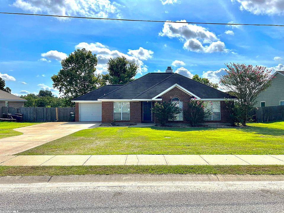 All brick 3-bedroom 2 bath home with an incredible over-sized fence in back yard oasis, is ready for its new homeowners. There is NO HOA so bring your Camper or your Boat and store it under the large metal storage shed. The back yard you’ll find a private oasis with an above-ground pool (new sand pump), open patio, fire pit, and a large 19X24 farmhouse storage shed with double loft and tons of potential, and it is fully fenced. You will fall in love with the inside of this home as well. As you walk in the front door of this home, you are charmed withs a large open floorplan with a real wood burning fireplace, a breakfast bar, dining area, and large living room. Brand new French doors leading you out to that amazing back yard, with all the natural light you could want. The primary suite has brand new carpet and large windows for natural light. The primary bathroom has a garden tub, separate shower with seat, his and her closets, and double vanity. Large laundry room with cabinetry and window. Re-Plumbed 2021 and the hot water heater replaced 2021. The central location offers quick access to all of Baldwin, Mobile and Escambia Counties by way of Highway 90. You can very quickly access Highway 59, Baldwin Beach Express, and Interstate 10. Don't miss out on this Amazing Opportunity.