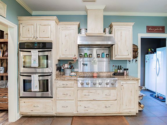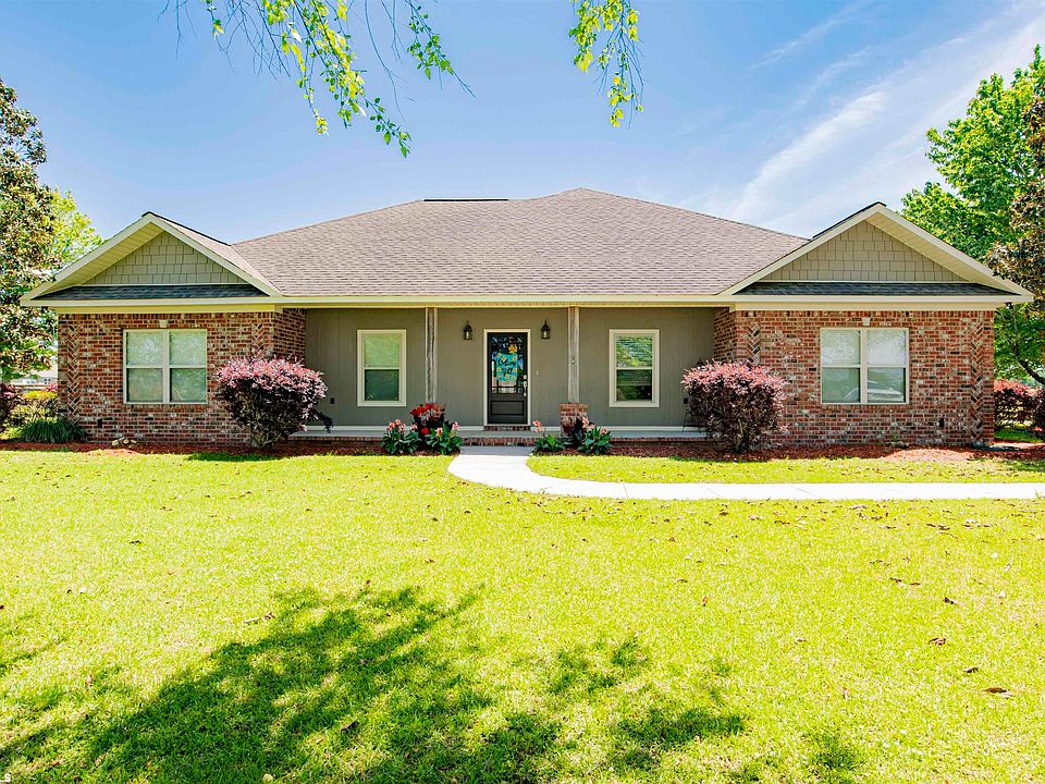 That rare find you have been waiting for! Custom built ICF home situated on 1 acre with no HOA. Meticulously kept with dream kitchen. Beautiful cabinets, granite counters, butcher block island. Five burner cooktop and double oven. Spacious eat-in kitchen area. Primary bedroom has large bathroom with oversized shower, jetted tub and His/Her vanities and closets. Split bedroom plan for added privacy. Bedrooms 2 and 3 are large with carpet. Main home is updated LVP flooring. Roomy family room features tray ceilings and gas log fireplace. Office/flex space off foyer. Oversized laundry for all your extras. Fabulous screened back porch, Double carport with sitting area. Separate 30x40 concrete building/shop. Well done with (2) 10x10 doors, loft area for storage, power and water to building. RV hookup, Built-in smoker, Septic and Well. The well has water softer system. Fruit trees and partially fenced. Great location just 10 minutes to I-10 and 30 to Gulf Beaches.