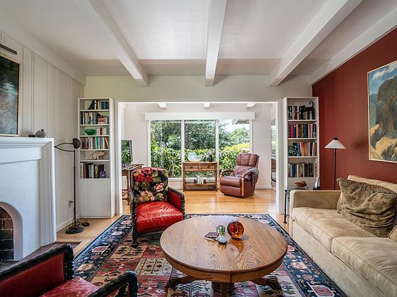 Classic, early 1950s, single level bungalow privately sited on an approximately 7,000 square foot lot in a low traffic neighborhood of many much bigger homes ready for you to enjoy right now and maybe expand and update later. Sunny location near everything and with peeks of the ocean. This home is neat as a pin, has been lovingly maintained by the same owner for decades, faces mainly southwesterly, and its sizable windows let in great natural light as do several skylights. Features include a private enclosed front garden courtyard, a sunshine filled back deck, easy care landscaping, a cozy gas-log fireplace in the vaulted ceiling living room, and bamboo and tile floors in several rooms. The thoughtfully designed floor plan lends an airy and cheerful feel to this charming home that has several more current touches yet which retains a more gracious and vintage vibe. Carmel schools!