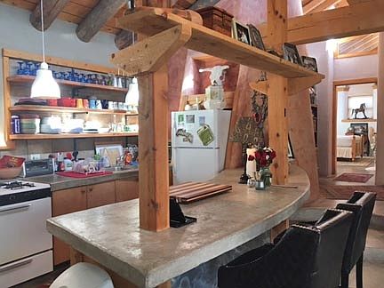 Sweet home, bermed up on the south & north sides. Lots of windows, large fenced patio on the west side, semi-covered patio space on the east side. Lovely interior with fireplace in the living room, entrance hall, efficient galley kitchen. There are 2 bedrooms; one is very large, with east patio entrance. The other bedroom is a bit smaller, but it also has an entrance to the east patio. Square footage measurement was done by the seller's agent. The total heated interior sf, per agent measurement, is 1265 sf, with an unheated entryway that is 97 sf.