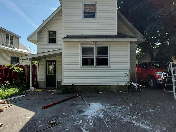 Investors and flippers take notice: 1920 Bungalow set up as a 2 family, with all separate utilities. Keep as a 2 family or easily convert to a single family home. The house was professionally gutted down to the studs due to a broken pipe upstairs. There is a new furnace and hot water heater. Large garage with car port at the rear of property. Bring your imagination and make it your own.