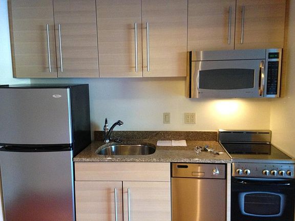 THIS IS A SPACIOUS UNIT WITH WASHER AND DRYER, BEAUTIFUL CHERRY HARDWOOD FLOORS, FRONT FACING, INCLUDES GARAGE PARKING, HAS FITNESS CENTER ON SITE AND PANORAMIC VIEWS FROM COMMON ROOF DECK! NO FEE !! INCLUDES GARAGE PARKING! BIG AS A ONE BED !