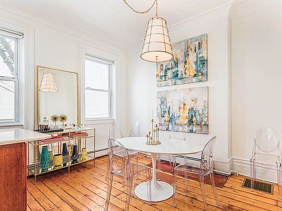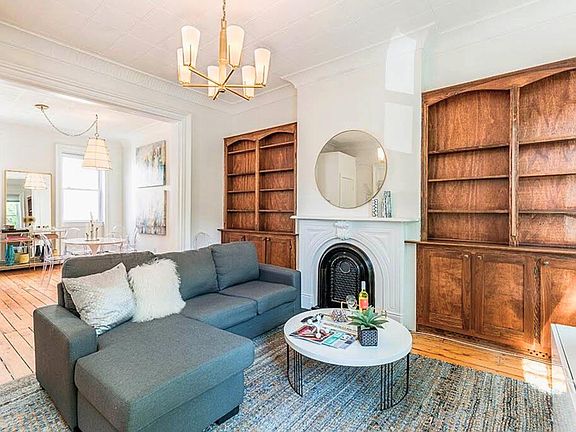 This charming and sun-drenched home is located on a tree-lined street in the heart of the Downtown Jersey City historic district, just 3 blocks from the Grove Path station. The unit features a private backyard, beautiful wide-plank rustic floors, 11' ceilings, a decorative fireplace with a stunning mantle, historic trim and crown moldings. This home has a spacious living room, formal dining space, and a fabulous chef's kitchen that is accentuated with abundant natural light. The kitchen features granite countertops with a breakfast bar, stainless steel appliances, and ample cabinet space. The first level boasts two spacious bedrooms, with gleaming hardwood floors and large windows. This home also features a partially finished basement that is for the private use of this unit. The private basement has the washer/dryer and tons of space for storage! Come see this home today!